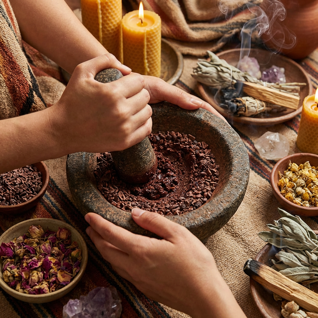 At Sacred Ritual Oils, ingredient purity and responsible sourcing guide every blend. This ceremonial cacao reflects our commitment to authentic botanicals, careful preparation, and elevated ritual experiences.